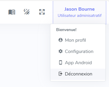 Pour vous déconnecter, veuillez cliquer sur l'espace utilisateur en haut à droite puis sur le menu Déconnexion.